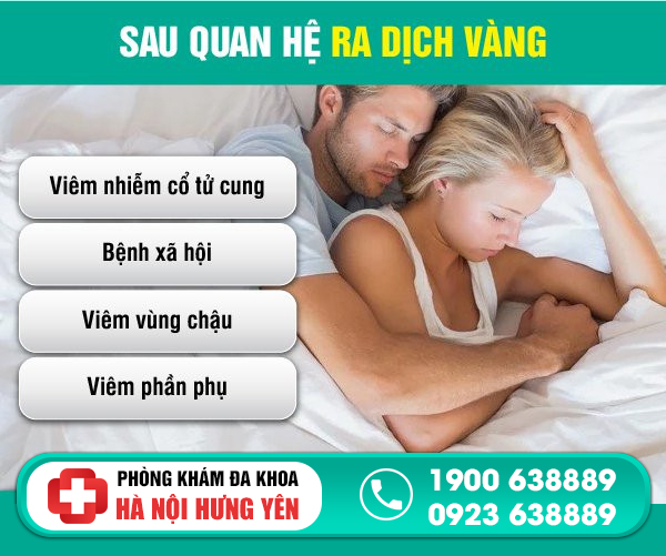 Sau khi quan hệ tình dục ra dịch màu vàng là tình trạng không hiếm gặp ở nữ giới. Chị em cũng không nên xem nhẹ bởi đây có thể là dấu hiệu cảnh báo nguy cơ bị mắc nhiều bệnh lý viêm nhiễm phụ...