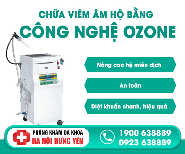 Bệnh viêm âm hộ được chữa hiệu quả bằng Kỹ thuật OZONE. Bác sĩ sẽ đưa OZONE vào trong âm đạo bằng dẫn khí đặc chế và đưa đúng vào vùng bị bệnh bên trong. Chỉ trong thời gian ngắn, OZONE có thể tiêu diệt được vi khuẩn, bệnh viêm âm đạo đã có thể được điều trị ngay cả khi bị lâu ngày không chữa khỏi. Phương pháp này không có tác dụng phụ đối với cơ thể, không làm mất độ cân bằng axit trong môi trường âm đạo và đạt hiệu quả chữa trị cao, nhận được sự hài lòng từ phía người bệnh.