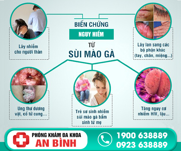 Mụn cóc sinh dục có nguy hiểm không? Theo các bác sĩ tại Phòng Khám Đa Khoa An Bình , mụn cóc sinh dục là bệnh lý nguy hiểm. Nếu không được thăm khám và điều trị sớm sẽ để lại những hậu quả nghiêm trọng như ảnh hưởng đến tâm lý, làm viêm nhiễm đường sinh dục, tăng nguy cơ mắc bệnh xã hội khác, tiến triển thành ác tính…