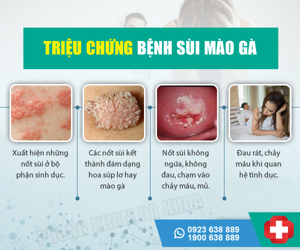 Bệnh sùi mào gà là căn bệnh xã hội nguy hiểm vì thế việc nắm được biểu hiện của bệnh sẽ giúp bạn phát hiện bệnh sớm và thăm khám kịp thời hơn. Dưới đây là thông tin về triệu chứng của sùi mào gà...